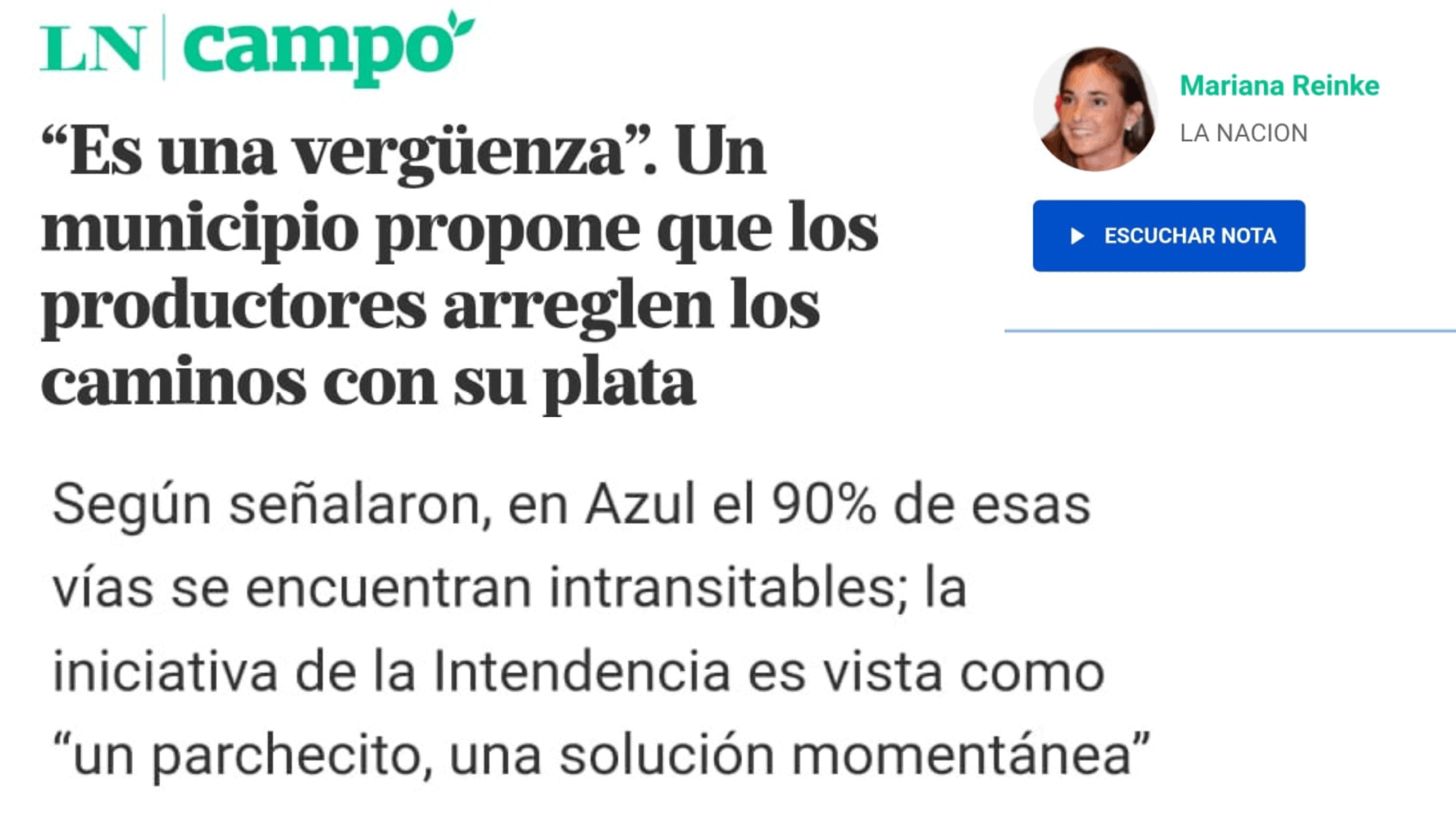 Más del 90 % de los caminos rurales en distritos como Azul están en estado intransitable, muchos